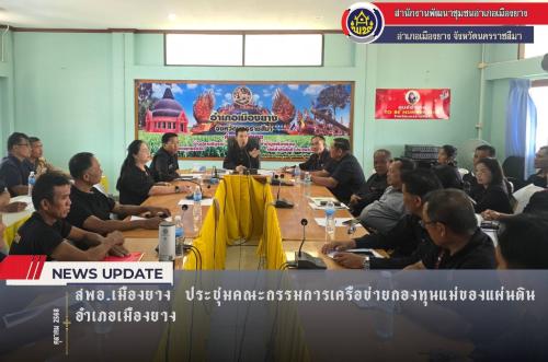 นายเศรษฐี แพรกนัทที นายอำเภอเมืองยาง ร่วมเป็นเกียรติเป็นประธานในการประชุมคณะกรรมการเครือข่ายกองทุนแม่ของแผ่นดิน อำเภอเมืองยาง