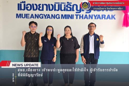 อําเภอเมืองยาง โดย นายเศรษฐี แพรกนัทที นายอำเภอเมืองยาง ร่วมกับโรงพยาบาลเฉลิมพระเกียรติสมเด็จย่า ๑๐๐ ปี เห็นความสําคัญ ของการดูแลผู้ป่วยจิตเวชและยาเสพติด รวมทั้งปฏิบัติตามนโยบายของรัฐบาลและกระทรวงสาธารณสุข ซึ่งเป็นการพัฒนาศักยภาพของสถานบริการให้เป็นไปตามมาตรฐาน มีประสิทธิภาพและบรรลุวัตถุประสงค์ การแก้ไขปัญหาผู้ใช้ ผู้เสพ ผู้ติดยาเสพติด ในปีงบประมาณ ๒๕๖๘ จึงได้ดําเนินการบําบัดรักษาและพื้นฟู สมรรถภาพผู้ติดยาเสพติดมินิธัญญารักษ์ระยะกลาง (IMC) ซึ่งจําเป็นต้องได้รับการดูแลแบบผู้ป่วยใน ในสถานที่ ปลอดภัย มีการเฝ้าระวัง เพื่อป้องกันความเสี่ยงและการเกิดภาวะแทรกซ้อนทั้งด้านจิตใจและร่างกาย