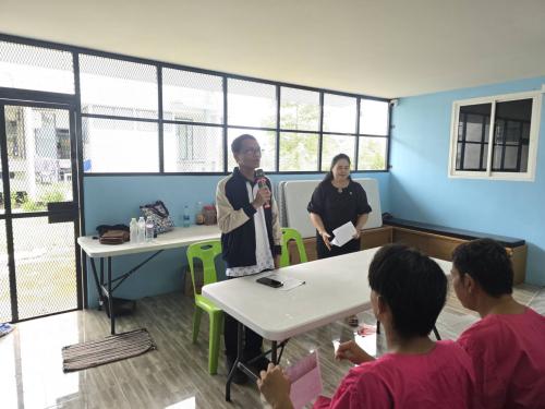2. นายสุพีร์ พรมน้ำ เจ้าหน้าที่พัฒนาชุมชน กล่าวให้กำลังใจและให้ความรู้เกี่ยวกับ เศรษฐกิจพอเพียงและการทำโคกหนองนา เพื่อ ให้ผู้ที่ผ่านการบำบัดสามารถพึ่งพาตนเองได้